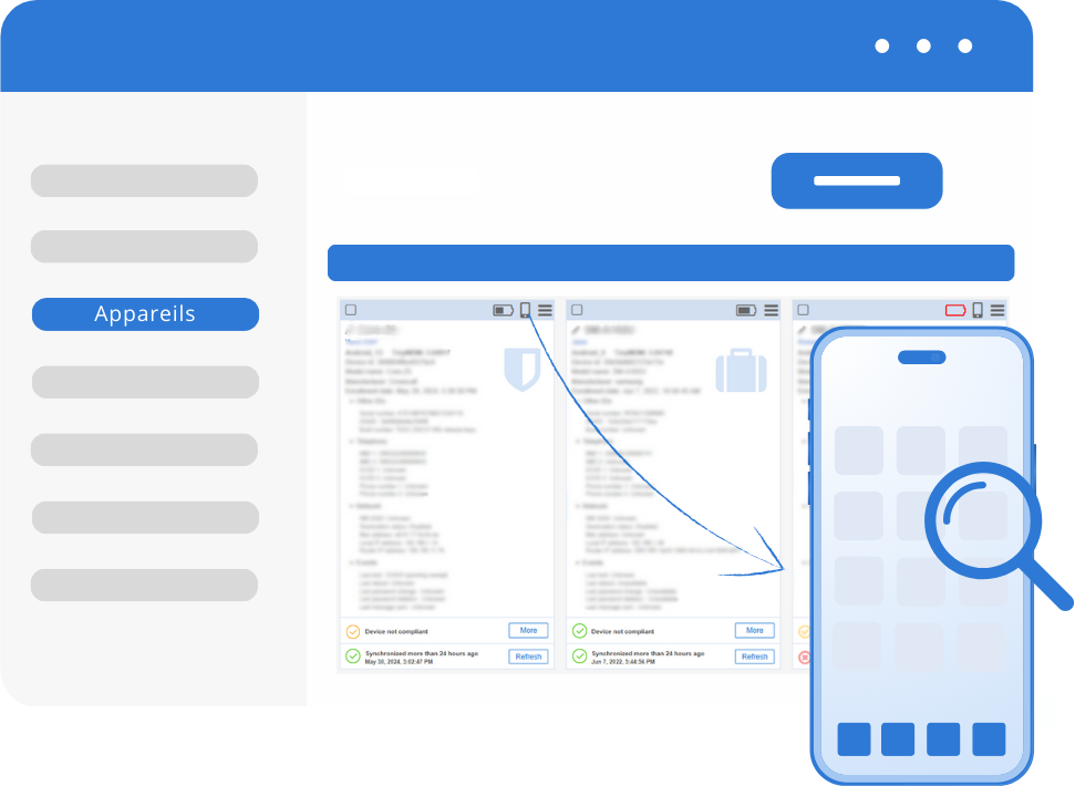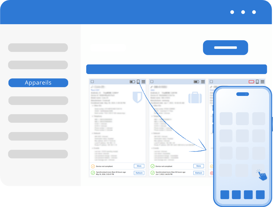 Grâce à la fonctionnalité TinyMDM de visualisation à distance, vous pouvez faire un partage d’écran de l’appareil depuis votre console d’administration, pour avoir une compréhension totale de la situation, même en étant loin. Cette fonctionnalité est compatible avec tous les appareils, peu importe leur marque ou leur modèle. Elle est également incluse gratuitement dans notre solution.