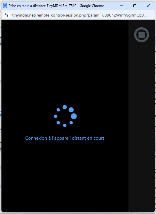 La session à distance peut être arrêtée depuis la console d’administration ou depuis l’appareil.