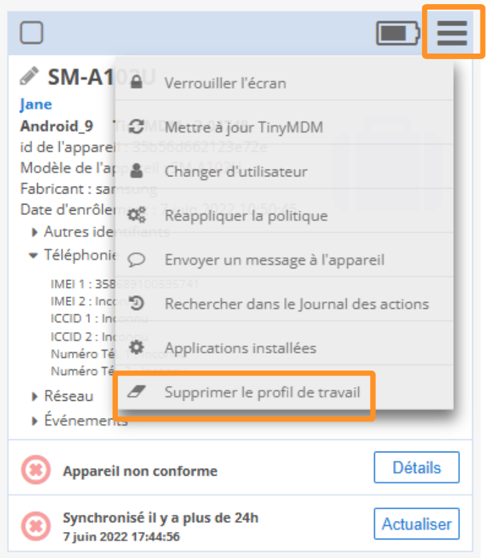 - Cliquez sur l’icone 三 en haut à droite de l’appareil concerné