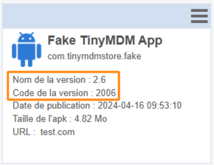 Pour qu’une application puisse être mise à jour, le nom de package de la nouvelle version doit être identique à celui de la version précédente afin que le système Android de l’appareil reconnaisse qu’il s’agit bien de la même application et initie la mise à jour.
