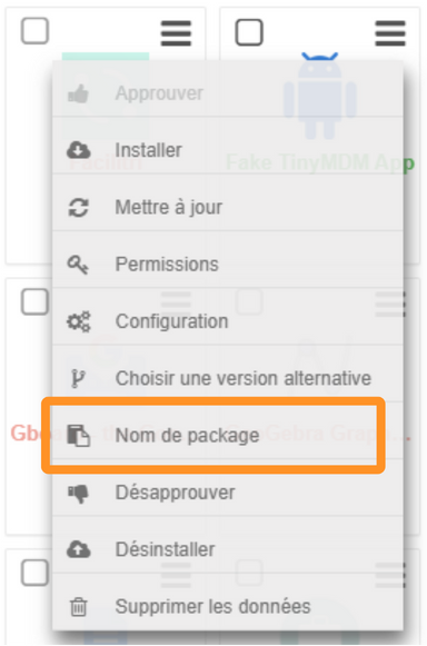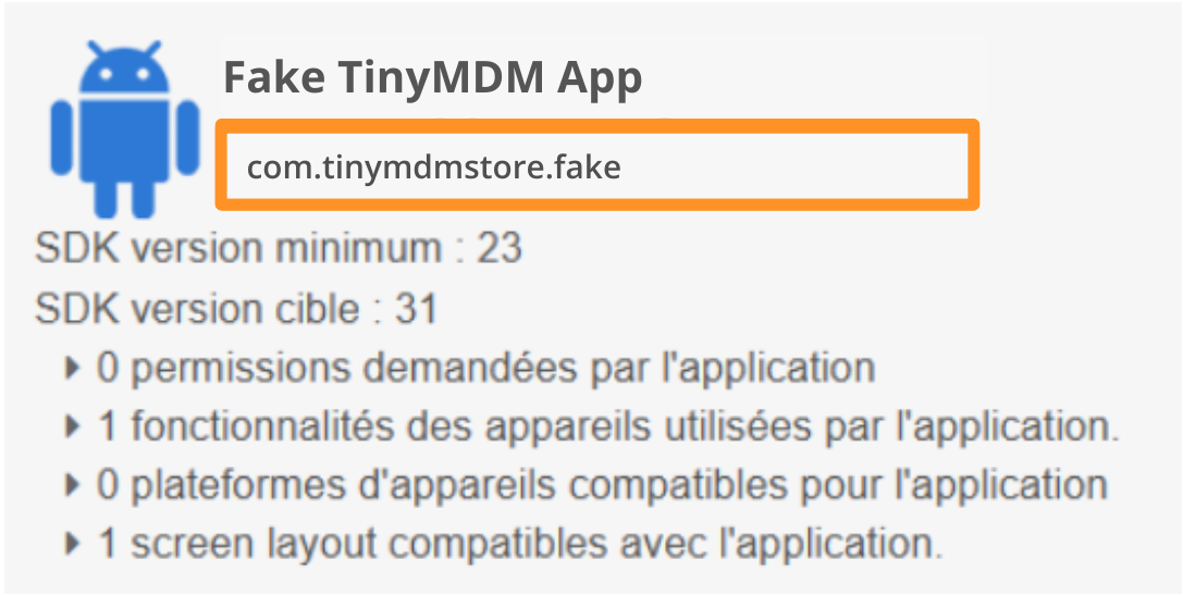 Depuis la console TinyMDM, le nom de package d’une application est utilisé pour reconnaître l’application dans le TinyMDM Store ou le Play Store Privé.