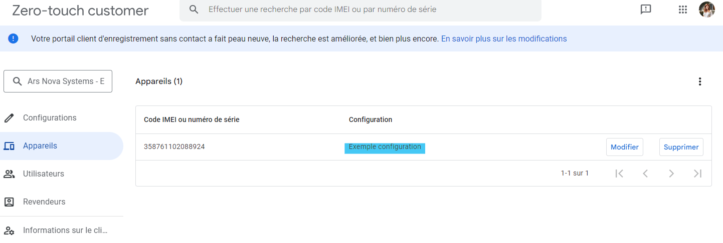 Dans l’onglet Appareils, vous pouvez voir une liste de tous les appareils “Zero Touch” que vous avez achetés chez votre revendeur ZTE actif. S’il manque des appareils, n’hésitez pas à le faire savoir à votre revendeur.